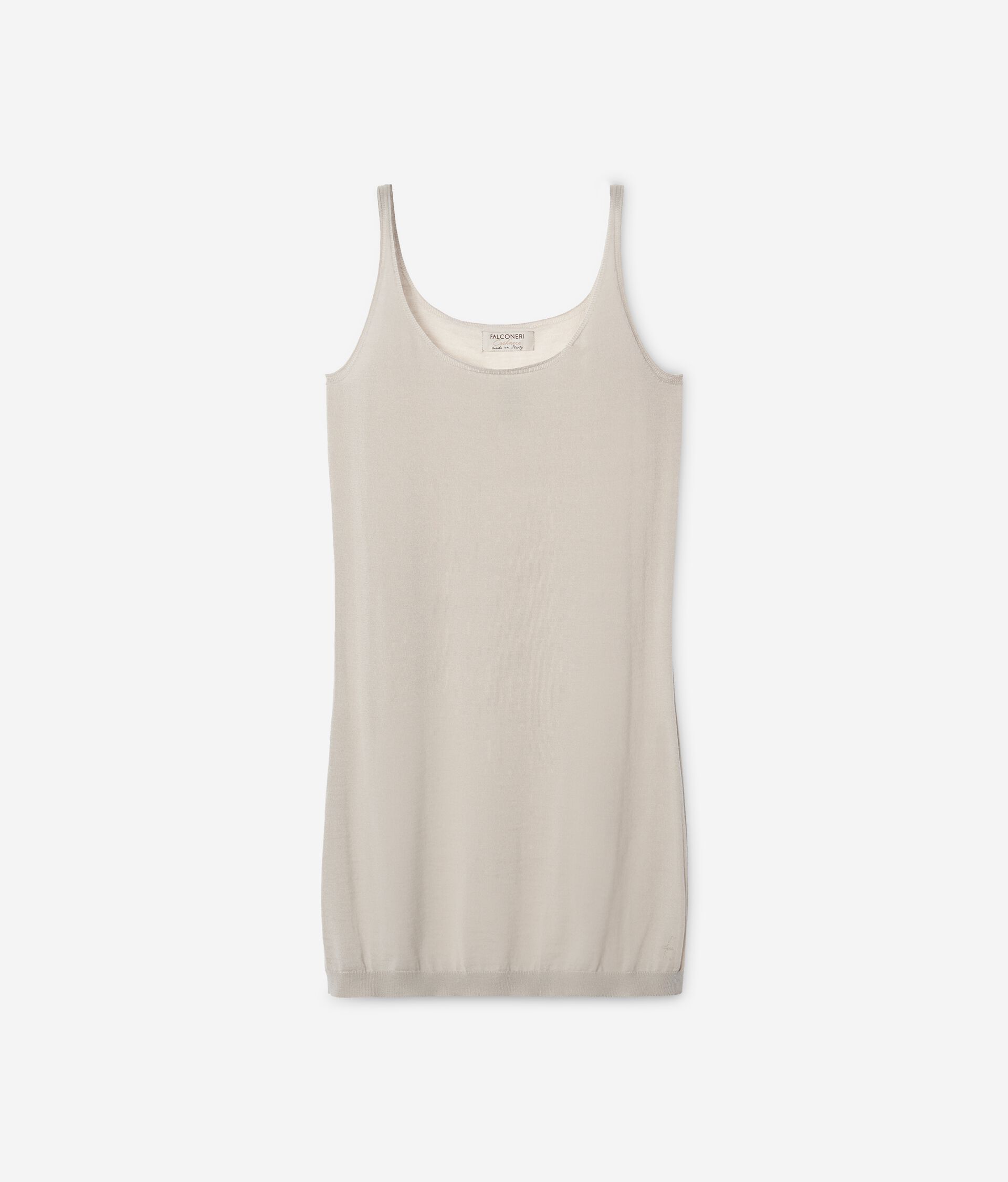Maxi tank in 100% Ultralight Cashmere with narrow straps. Regular fit. Ideal for wearing under a jacket. Please note that this item is fitted, we advise purchasing a larger size.