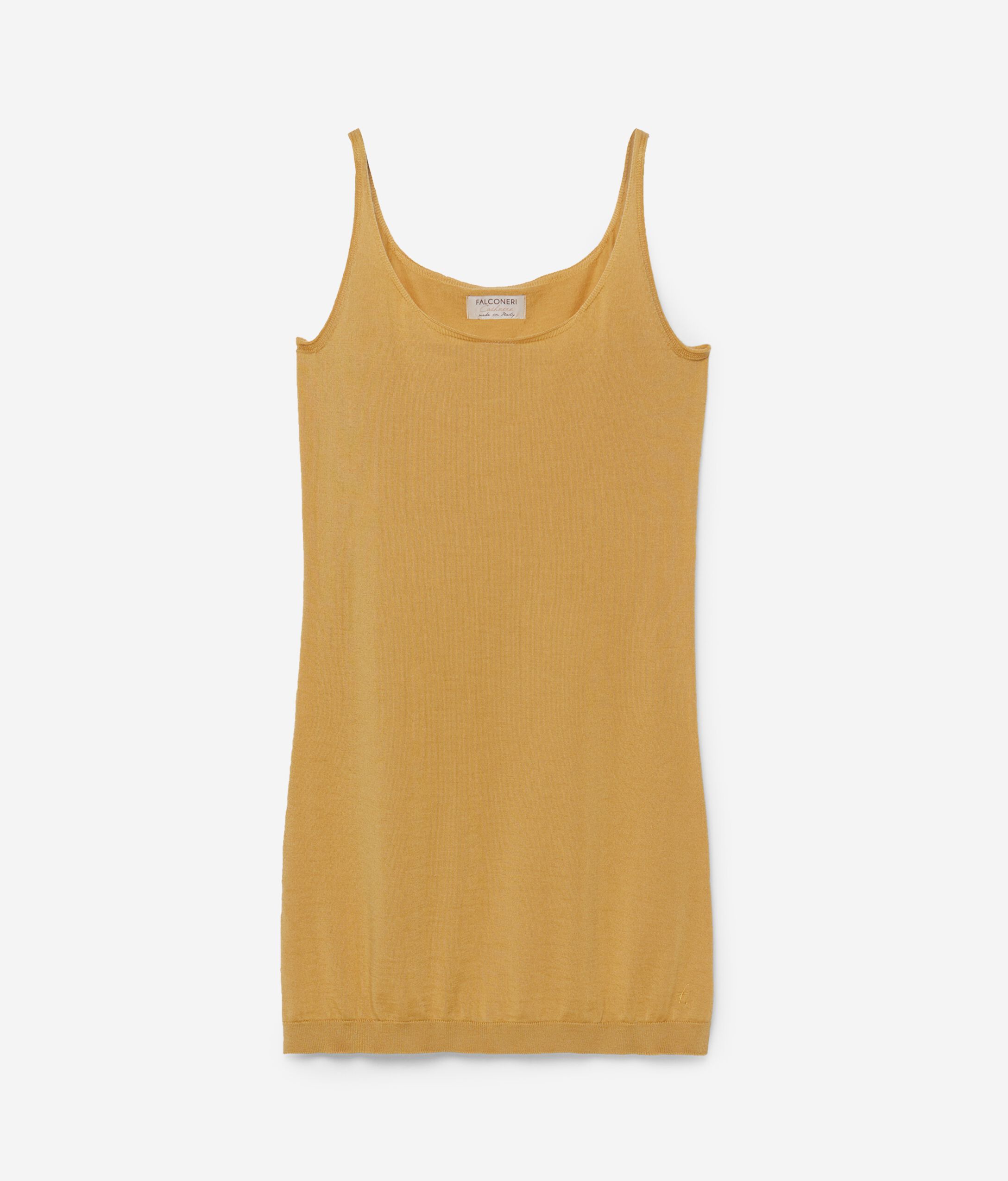 Maxi tank in 100% Ultralight Cashmere with narrow straps. Regular fit. Ideal for wearing under a jacket. Please note that this item is fitted, we advise purchasing a larger size.