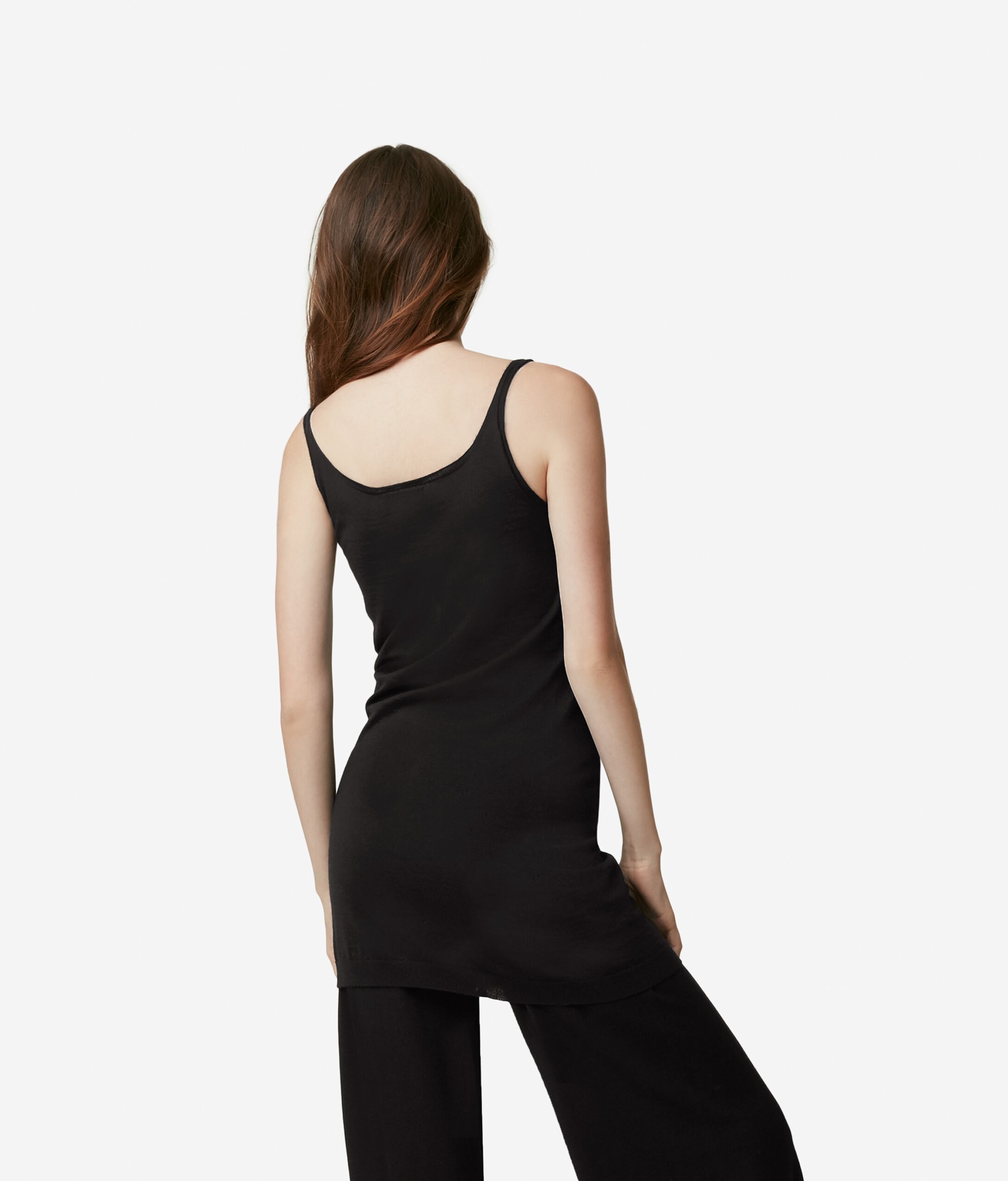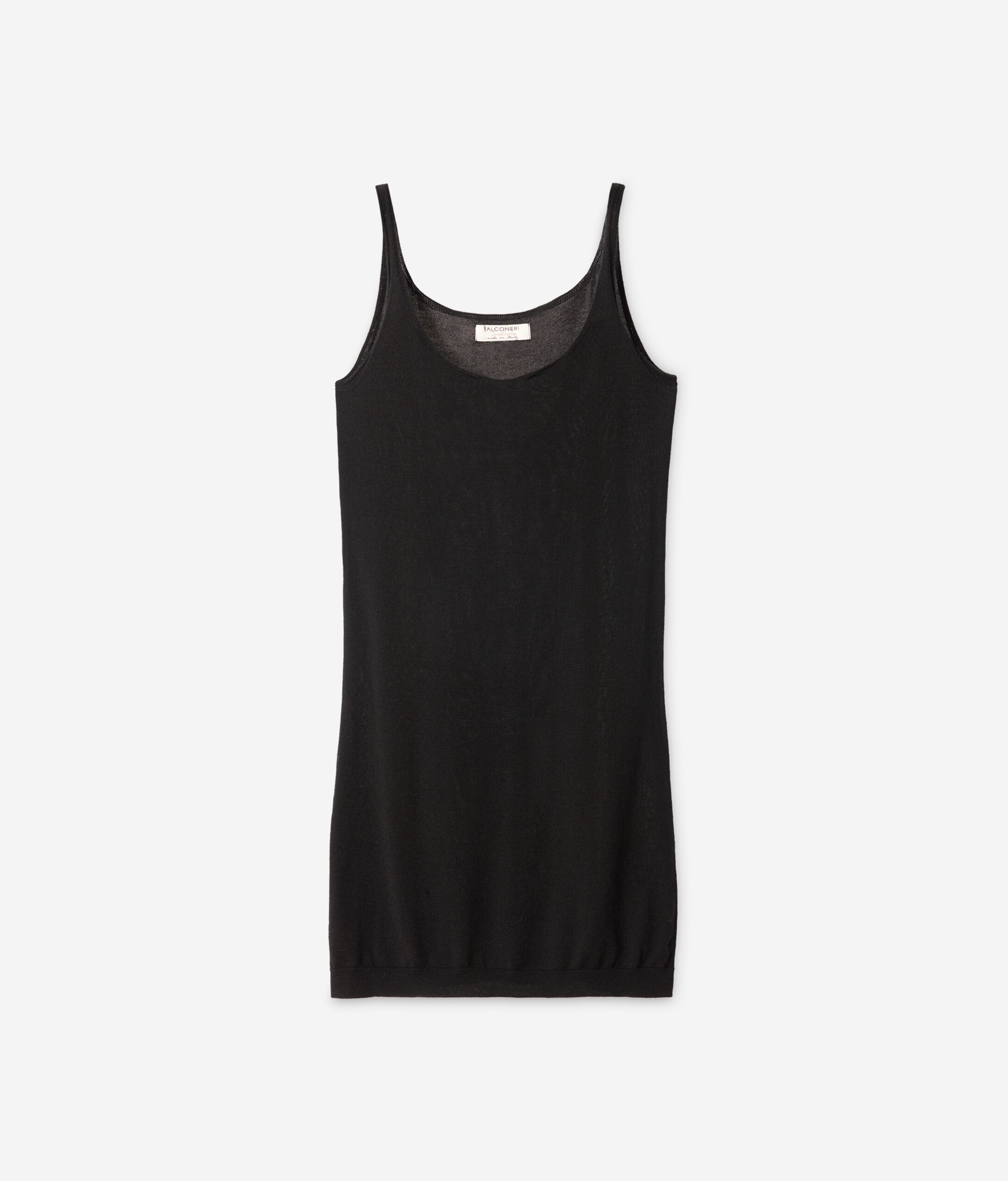 Maxi tank in 100% Ultralight Cashmere with narrow straps. Regular fit. Ideal for wearing under a jacket. Please note that this item is fitted, we advise purchasing a larger size.