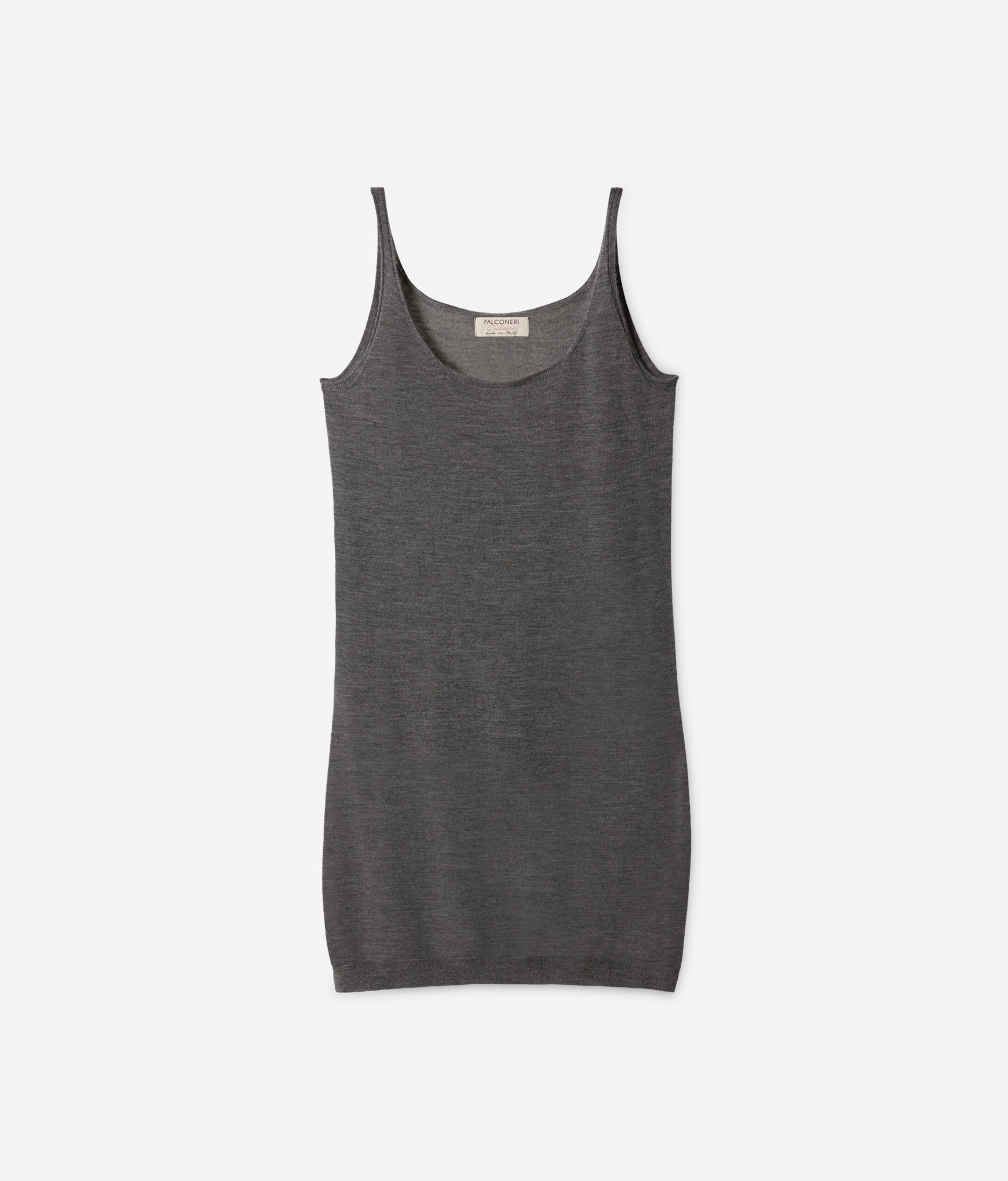 Maxi tank in 100% Ultralight Cashmere with narrow straps. Regular fit. Ideal for wearing under a jacket. Please note that this item is fitted, we advise purchasing a larger size.