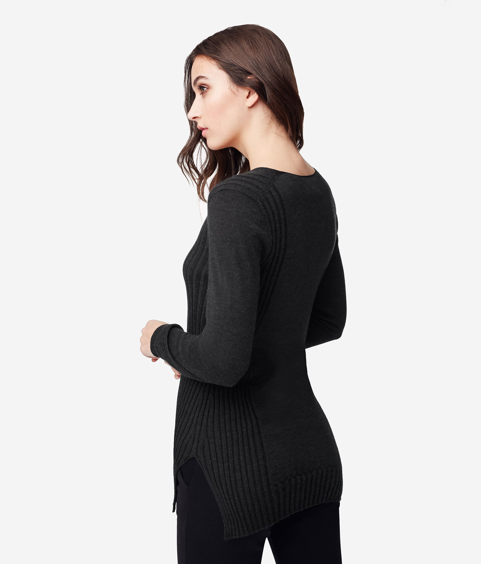 Maxi top in Ultralight Cashmere with deep V-neck and side slits.Featuring a deep ribbed collar, sides and hem.Straight-fit.
