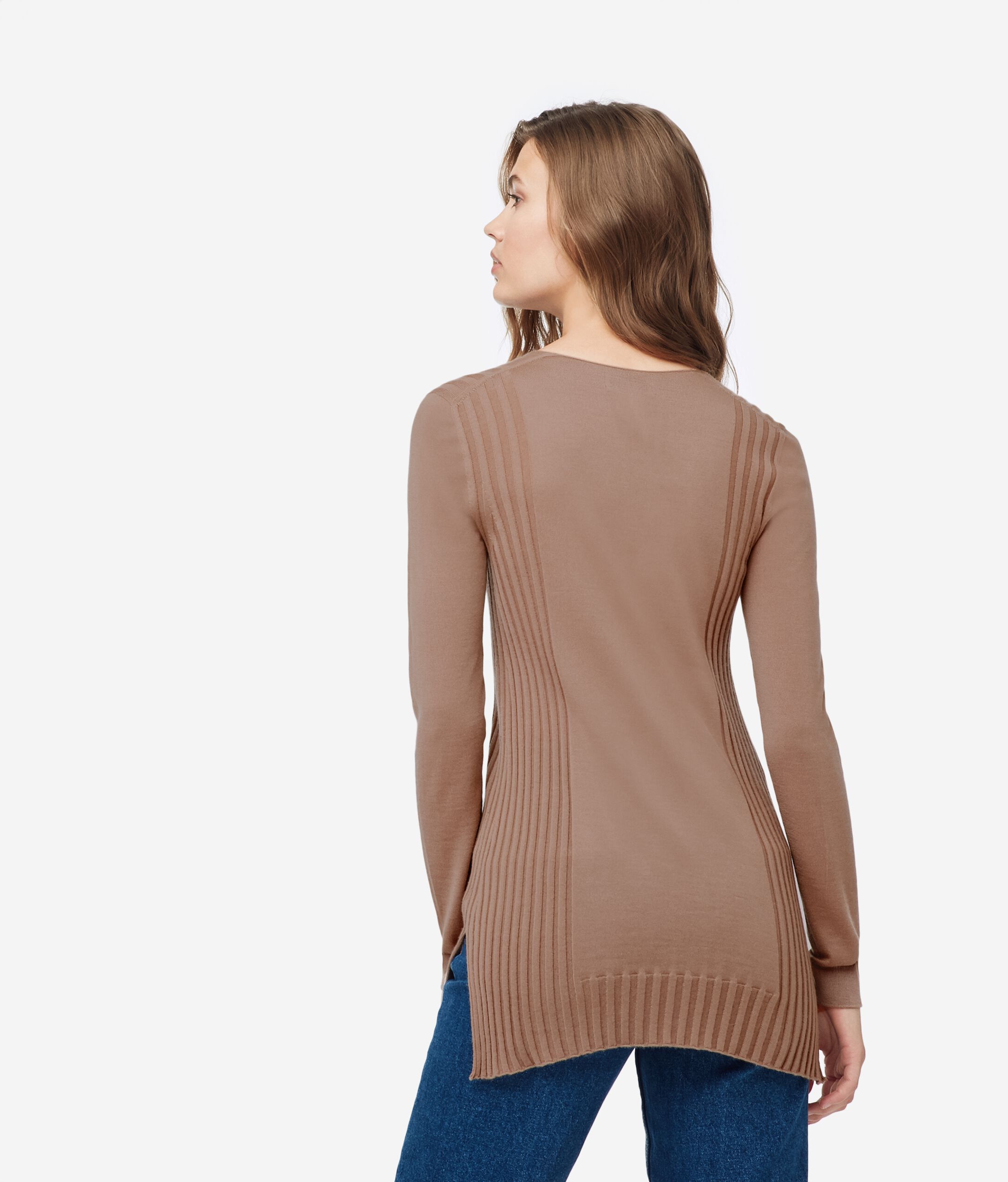 Maxi top in Ultralight Cashmere with deep V-neck and side slits.Featuring a deep ribbed collar, sides and hem.Straight-fit.