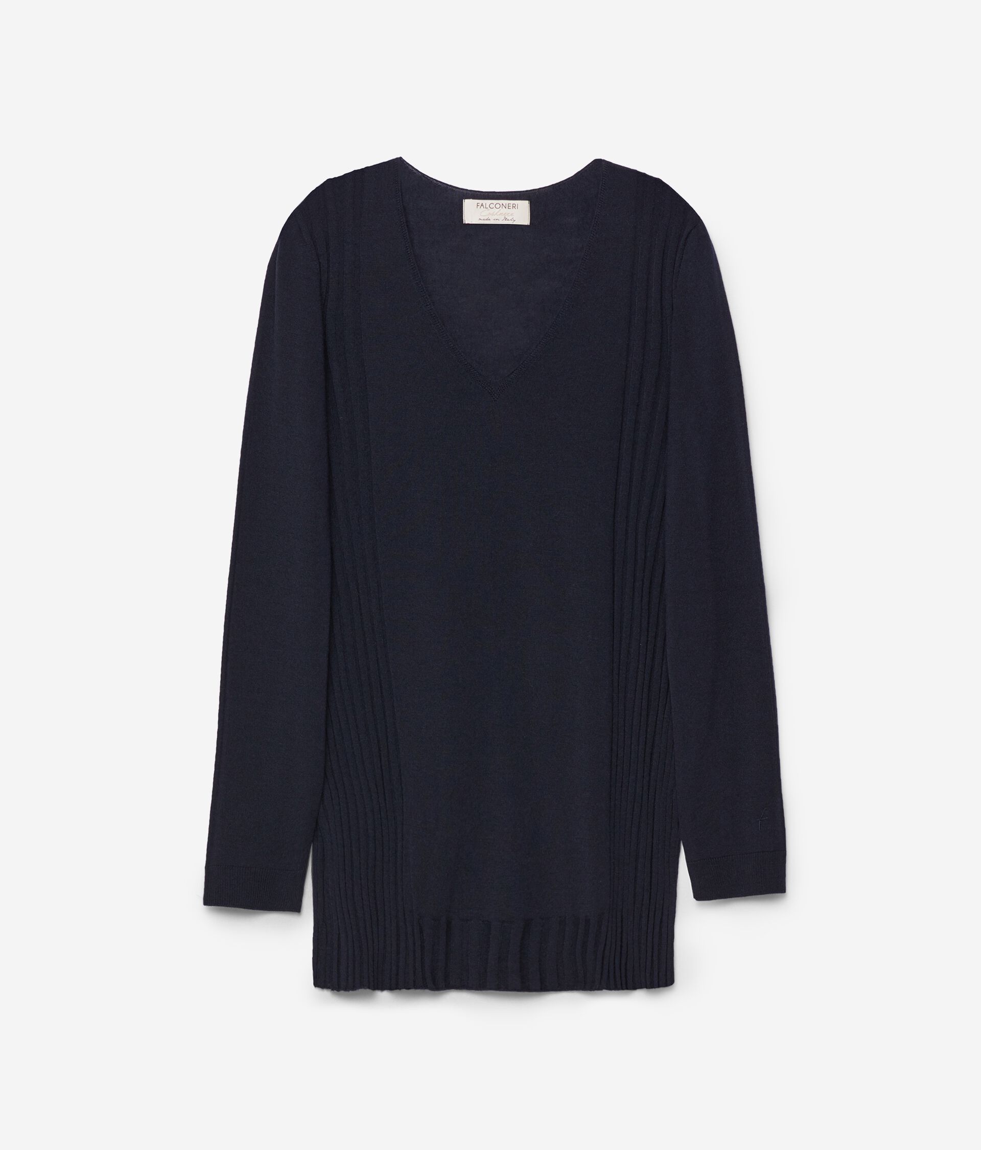 Maxi top in Ultralight Cashmere with deep V-neck and side slits.Featuring a deep ribbed collar, sides and hem.Straight-fit.
