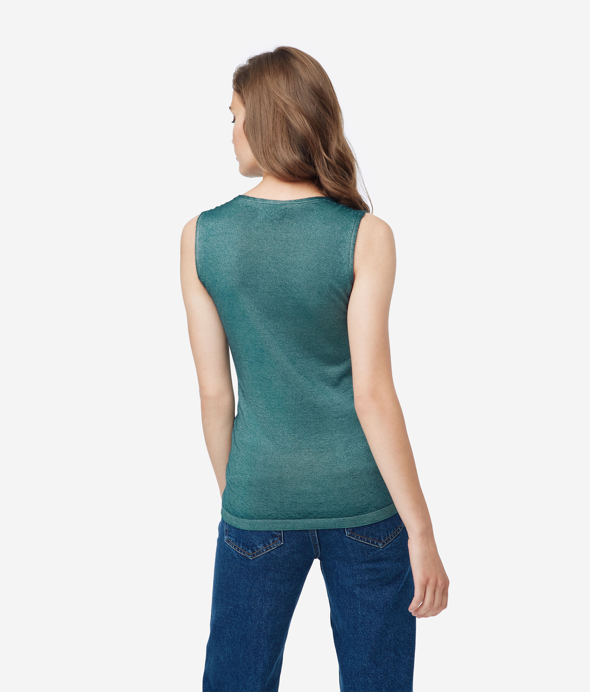 Shell top in 100% Ultralight Cashmere.Regular fit. Ideal for wearing under a jacket. Model is 178cm/ 70 in tall and wears size M Made in Italy