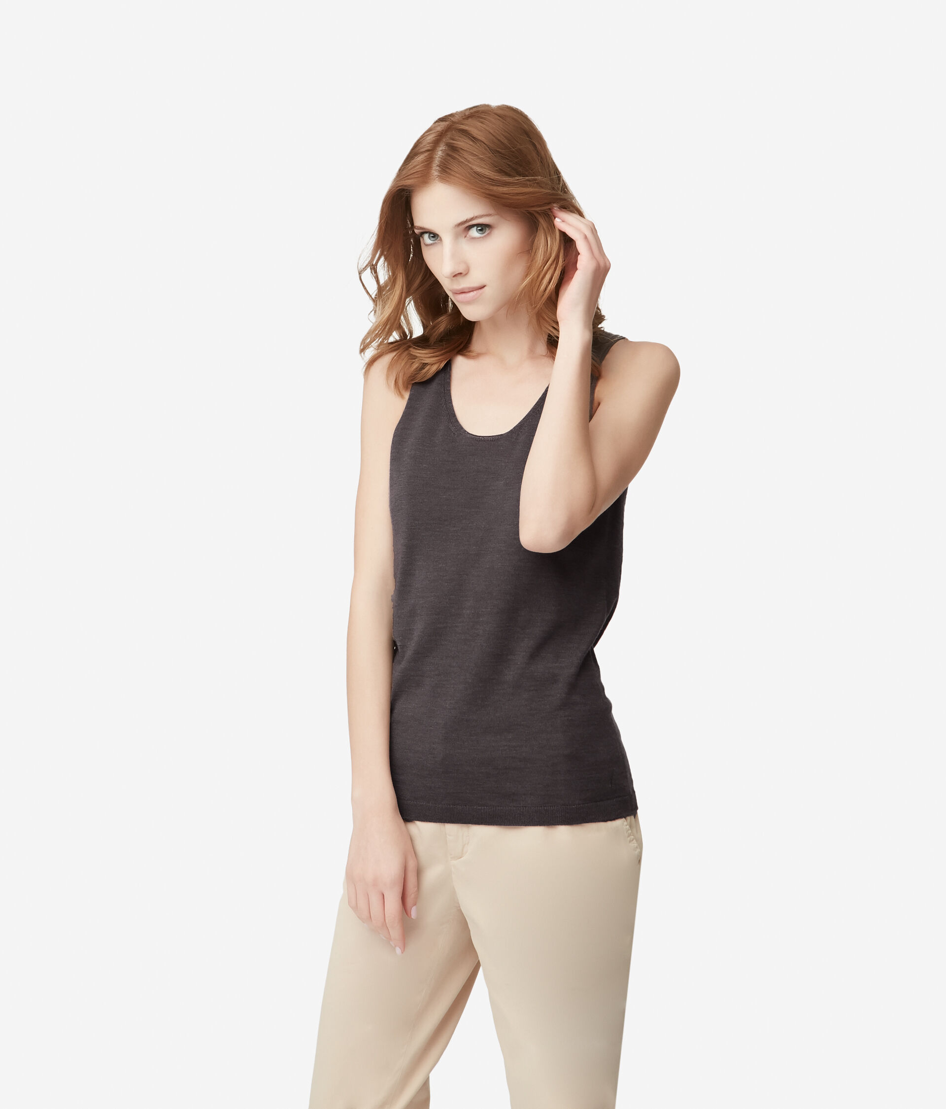 Wide-shoulder tank-top with a wide neckline in 100% Ultralight Cashmere with a seamless construction. Regular fit. Please note that this item is fitted, we advise purchasing a larger size.Classic garment, perfect worn under a jacket. Model is 177 cm tall and wears a size M