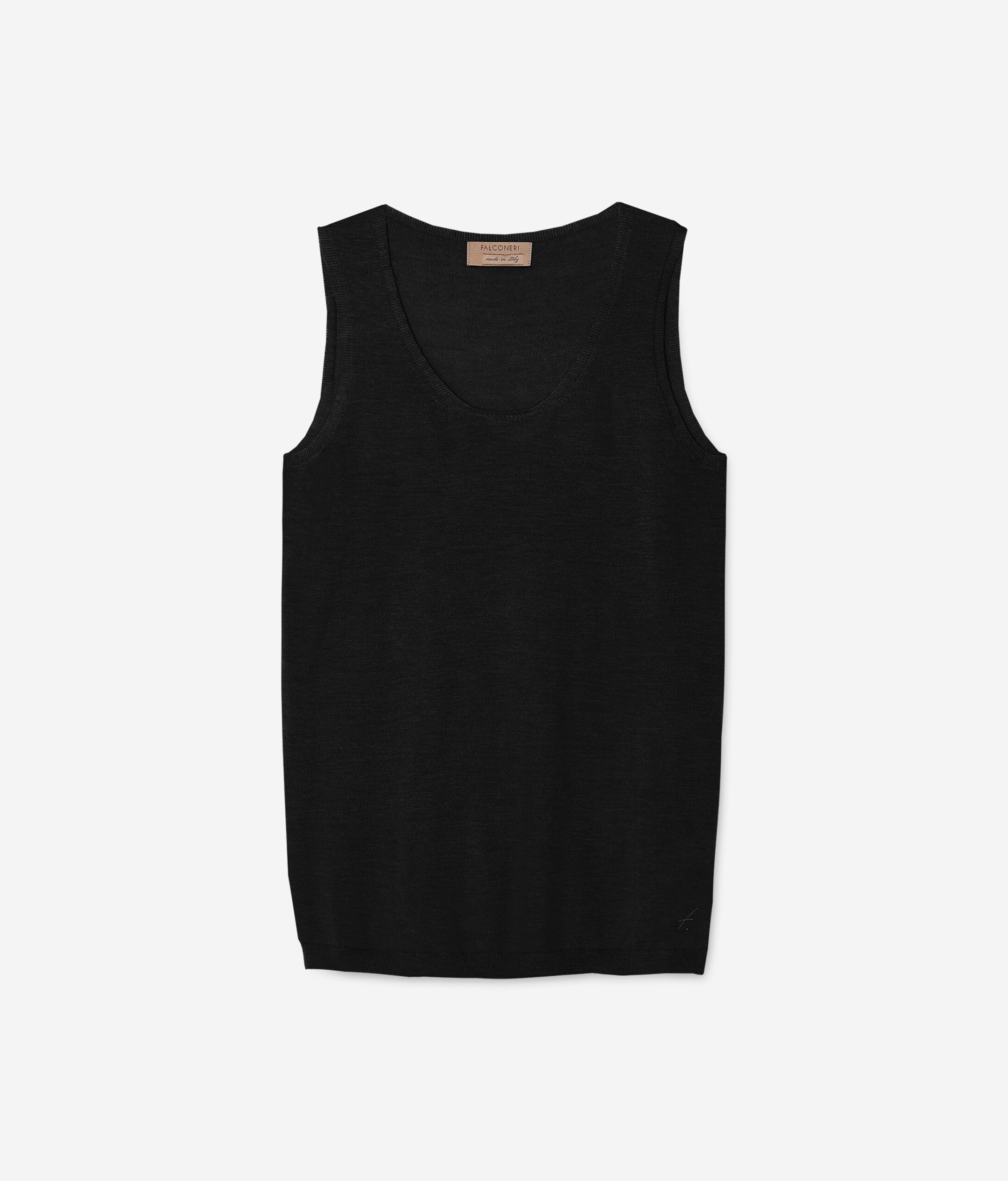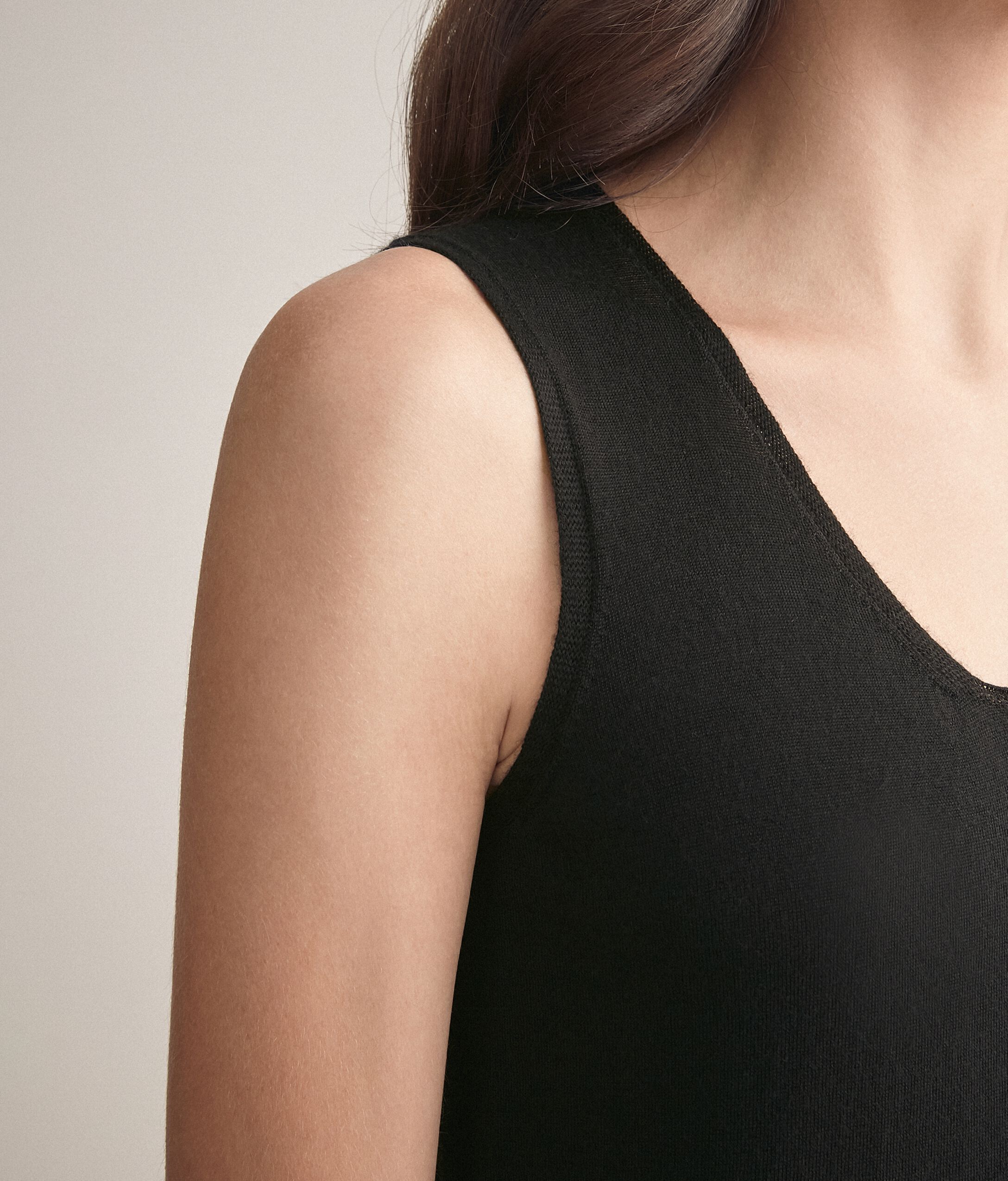 Wide-shoulder tank-top with a wide neckline in 100% Ultralight Cashmere with a seamless construction. Regular fit. Please note that this item is fitted, we advise purchasing a larger size.Classic garment, perfect worn under a jacket. Model is 177 cm tall and wears a size M
