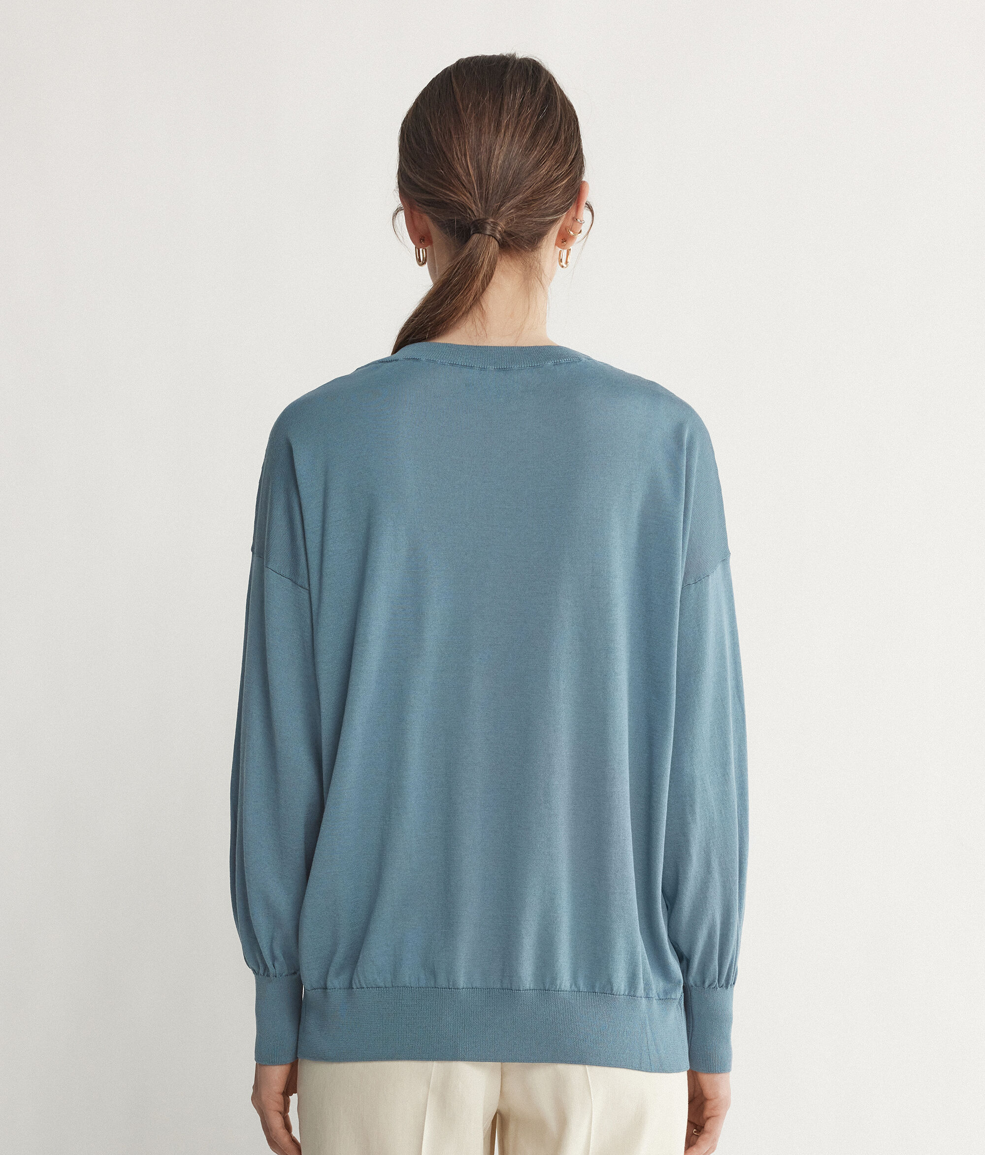 V-Neck Silk and Cotton Jumper with Balloon Sleeves