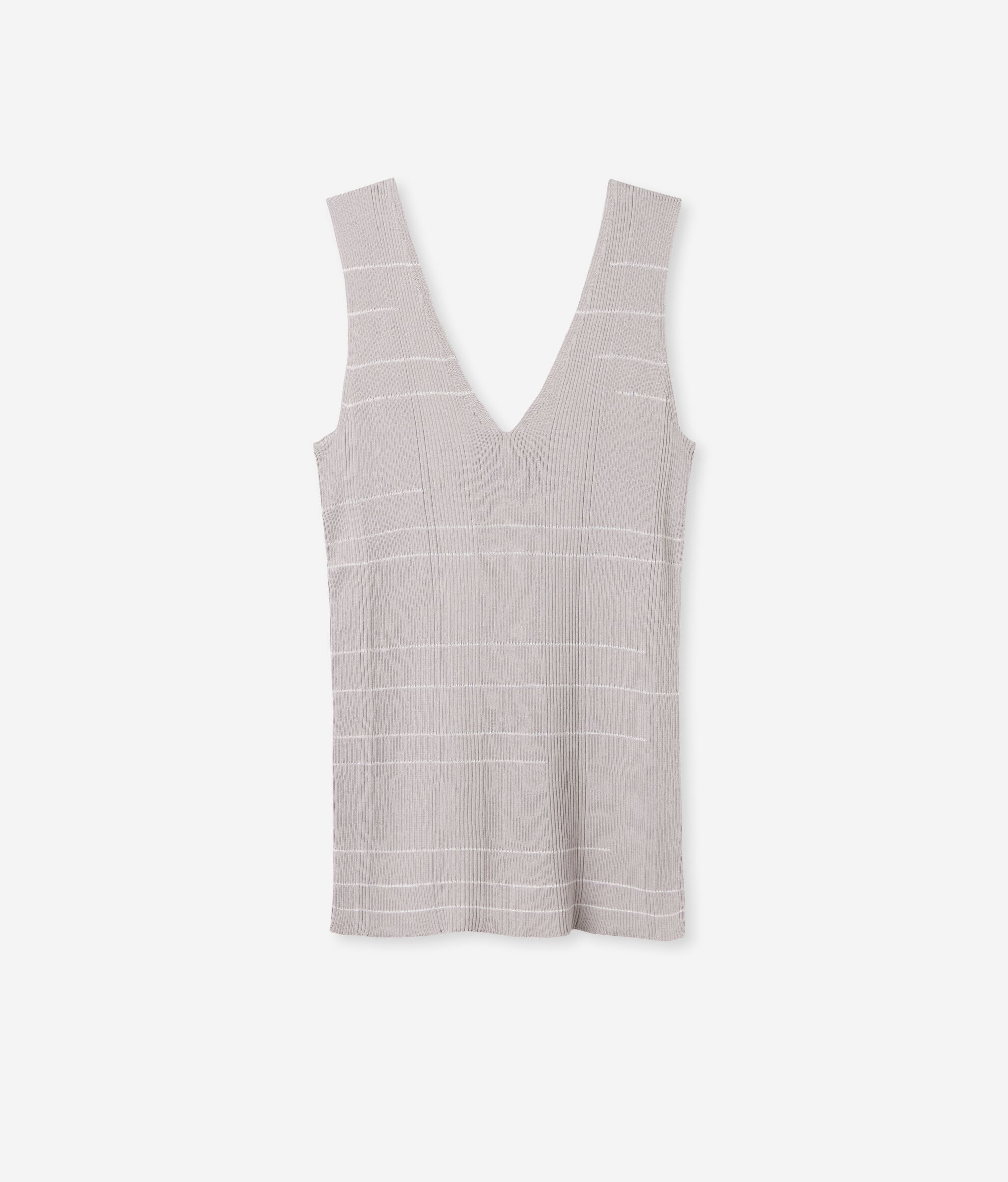 V-neck cotton top on the front and back with ribbed and striped effects. Slim fit, regular length.