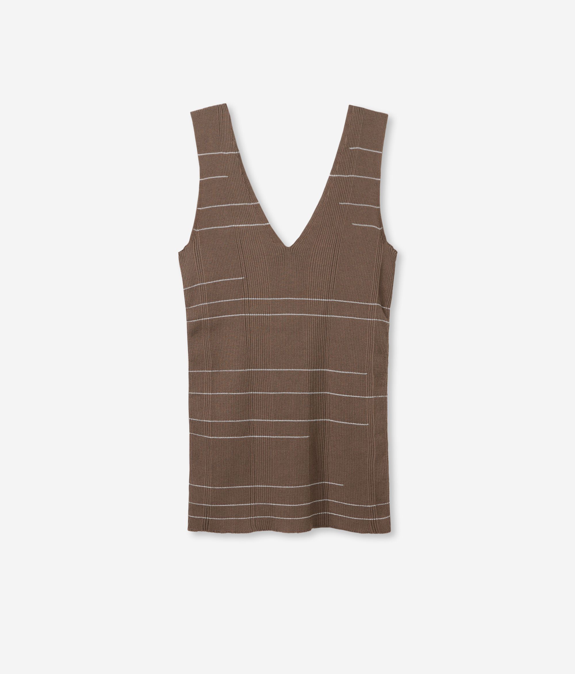 V-neck cotton top on the front and back with ribbed and striped effects. Slim fit, regular length.
